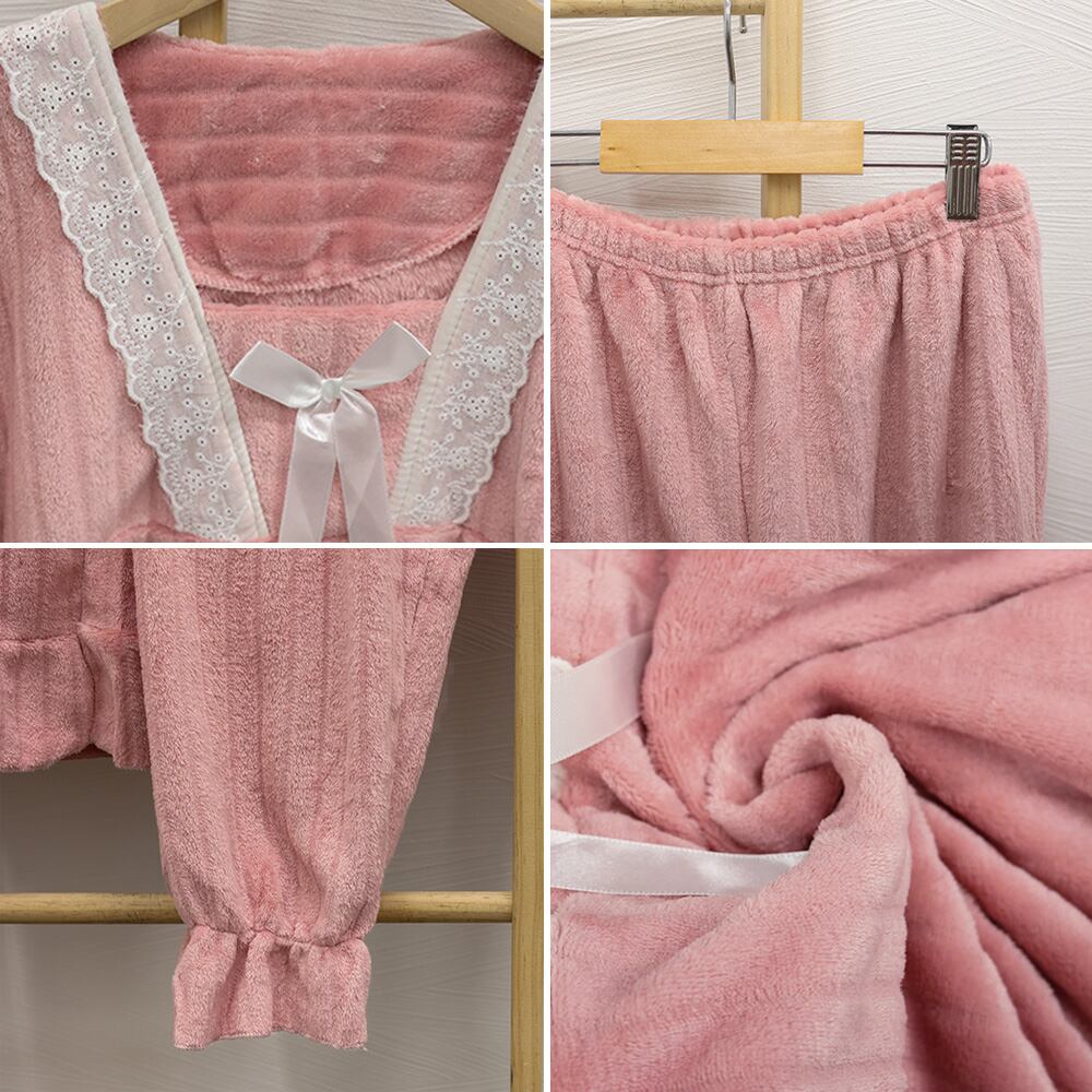 ふわふわパジャマ レディース 秋冬 暖かいルームウェア ラウンジウェア 女性 寝巻き 大人可愛い部屋着 長袖ナイトウェアガーリー パジャマ 修学旅行 パジャマ お泊りパジャマ旅行サラリと滑らかな薄手フリース生地を使用、ちくちくせずに暖かいのに蒸れないフェミニンテイストのセットアップルームウェア柄物と無地typeをご用意、レースとリボンのポイント付けによって、女性らしさを強調して引き立ててガーリー感満載お家でのリラックスタイムはもちろん、お泊りデートや女子会、出張や旅行にもおすすめのラウンジウェアトップスの素材:ポリエステル100%ボトムスの素材:ポリエステル100%カラー:ハート柄/リボン柄/くすみピンク/ベビーピンク/ブルーグレーサイズ:ワンサイズトップス:着丈:約66cm 肩幅:約46cm 袖丈:約56cm ゆき:約79cm 身幅:約58cm 胸囲:約116cmボトムス:着丈:約96cm 股下:約69cm ウエスト:約58-108cm(ゴム仕様) ヒップ:約114cm もも周り:約64cm裏地:なし伸縮性:なし透け感:なし生産国:中国※すべて平置きサイズです(採寸方法違いより、多少の誤差がございますので、ご了承ください)。※海外輸入品のため、商品の細部仕様は多少異なる場合がございます。予めご了承の上、ご注文お願い致します。