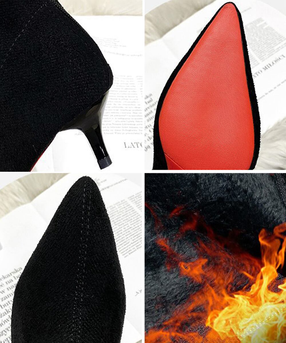 韓国上品ローヒールブーツ ポインテッドトゥ靴 ピンヒールシューズ 秋冬 疲れない ミドルブーツ 歩きやすい バックジップ大人ブーツきれいめ あったかブーツ美脚 通勤靴 履きやすいシーズンライクなスエード調に人気のレッドソール、履くだけで足元からコーデを格上げしてくれるローヒールブーティとんがりつま先はオトナ女子のスタイリッシュさを作り出し、裏側の起毛DESIGNは地面のひんやり冷たさから守ってくれてお洒落も実用も両立バックファスナーで脱ぎ履き簡単楽ちん、安定感があって歩きやすくてデイリーユースの最強味方になる1足甲素材:合成繊維底素材:合成底カラー:ブラック/モカ/アイボリーサイズ:22.5cm/23.0cm/23.5cm/24.0cm/24.5cm[22.5]長さ:約22.5cm 幅:約7.1cm ヒール:約5cm[23.0]長さ:約23.0cm 幅:約7.2cm ヒール:約5cm[23.5]長さ:約23.5cm 幅:約7.3cm ヒール:約5cm[24.0]長さ:約24.0cm 幅:約7.4cm ヒール:約5cm[24.5]長さ:約24.5cm 幅:約7.5cm ヒール:約5cm重さ(両足):約473-497g生産国:中国※すべて平置きサイズです(採寸方法違いより、多少の誤差がございますので、ご了承ください)。※商品は縫製上の細かいほつれ、汚れ、接着剤が残り、素材特有の臭いや接着剤等の臭いが残っている場合がございます。ご了承ください。※海外輸入品のため、商品の細部仕様は多少異なる場合がございます。予めご了承の上、ご注文お願い致します。