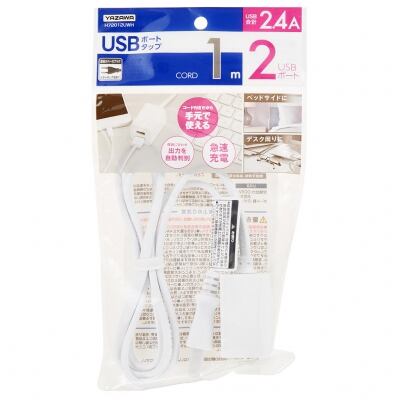 YAZAWA(ヤザワ) コード付きUSBタップ 2ポート2.4A  1m ホワイト H72012UWH