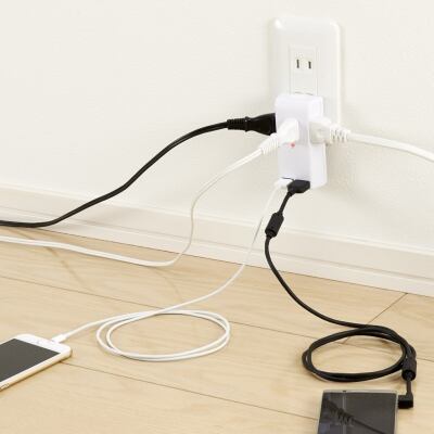 YAZAWA(ヤザワ)雷ガード付トリプルタップ3AC+2USB 2.4Aホワイト H6TK5002UWH