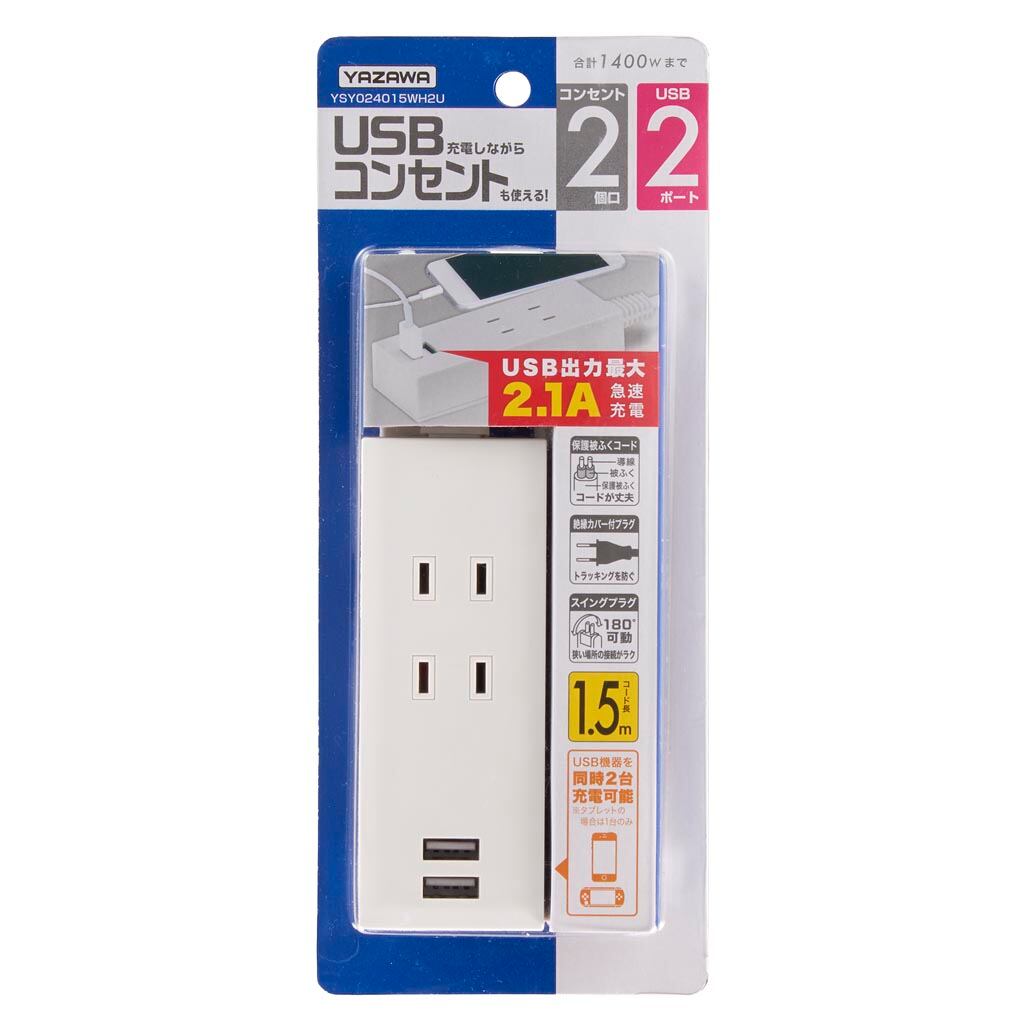 YAZAWA(ヤザワ) 2AC2USB2.1A1.5mホワイト Y024015WH2U
