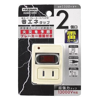 YAZAWA(ヤザワ) 雷ガード・ブレーカー機能付き省エネタップ2個口ホワイト Y02FUBHKS210WH