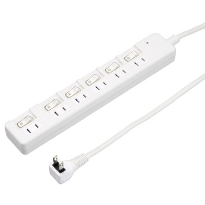 YAZAWA(ヤザワ)雷ガード付節電タップ 6個口 コード長2m 個別スイッチ付 ホワイト H8KS662WH