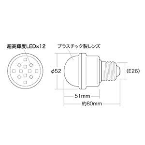 LEDサイン球 屋外用 口金E26 黄