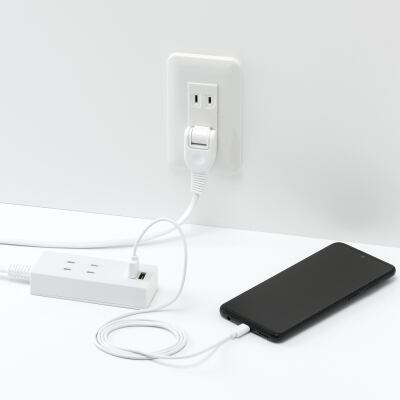 両挿しUSB タップ2個口 1m