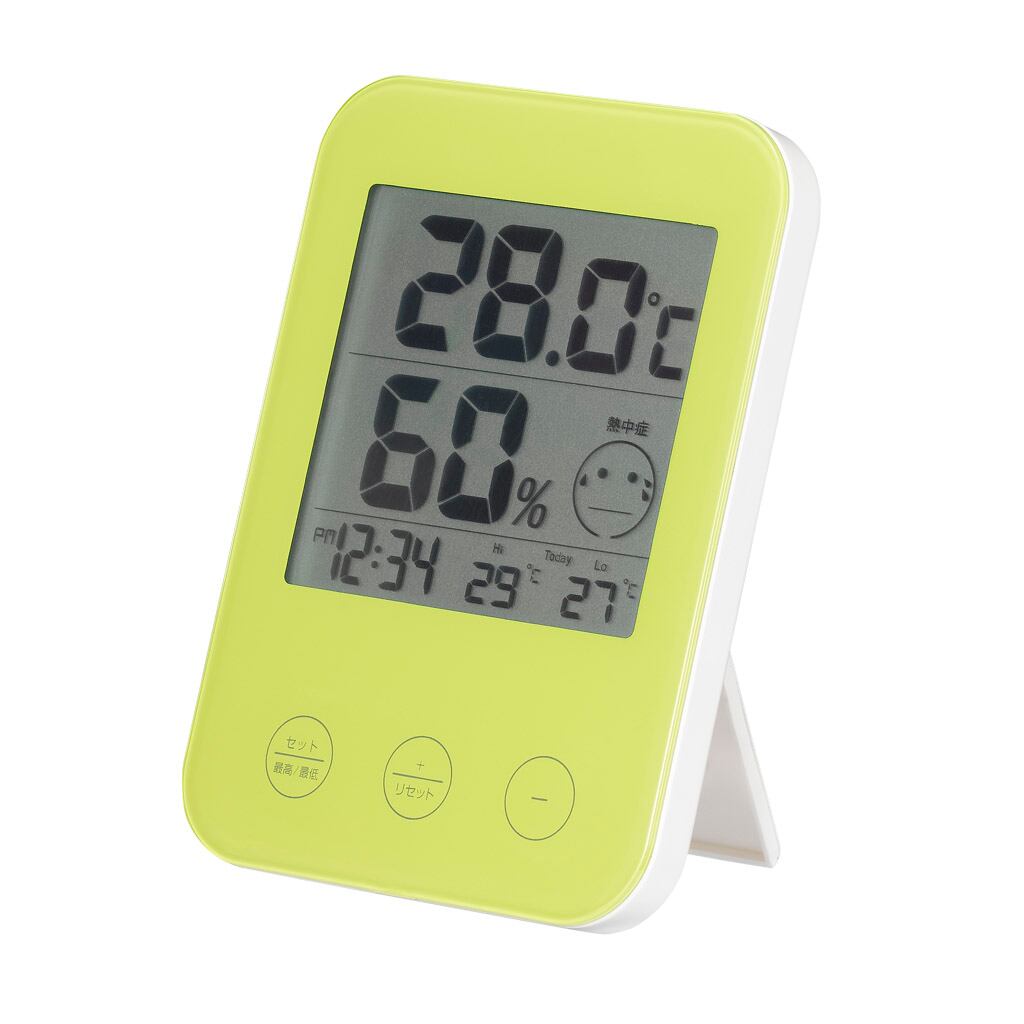 熱中症・インフルエンザ警報付 デジタル温湿度計 グリーン