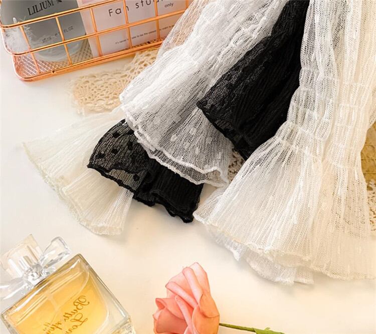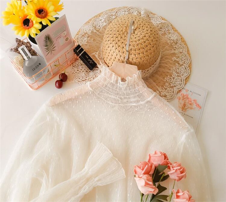 今っぽトレンド 2021 春 新品 レーヨン トップス タートルネック ランタンスリーブ レース 薄い 百掛け