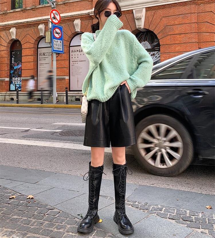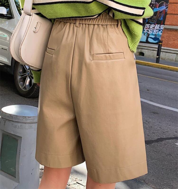 店長推薦新品 2021ファッション PUレザー 伸縮性ウエスト ショートパンツ 五分ズボンゆったりする個性