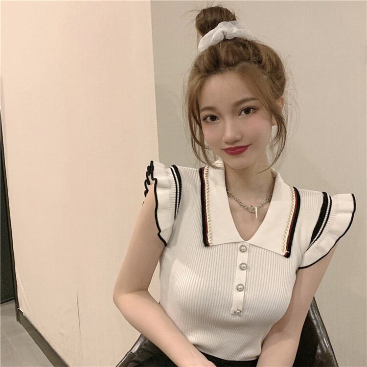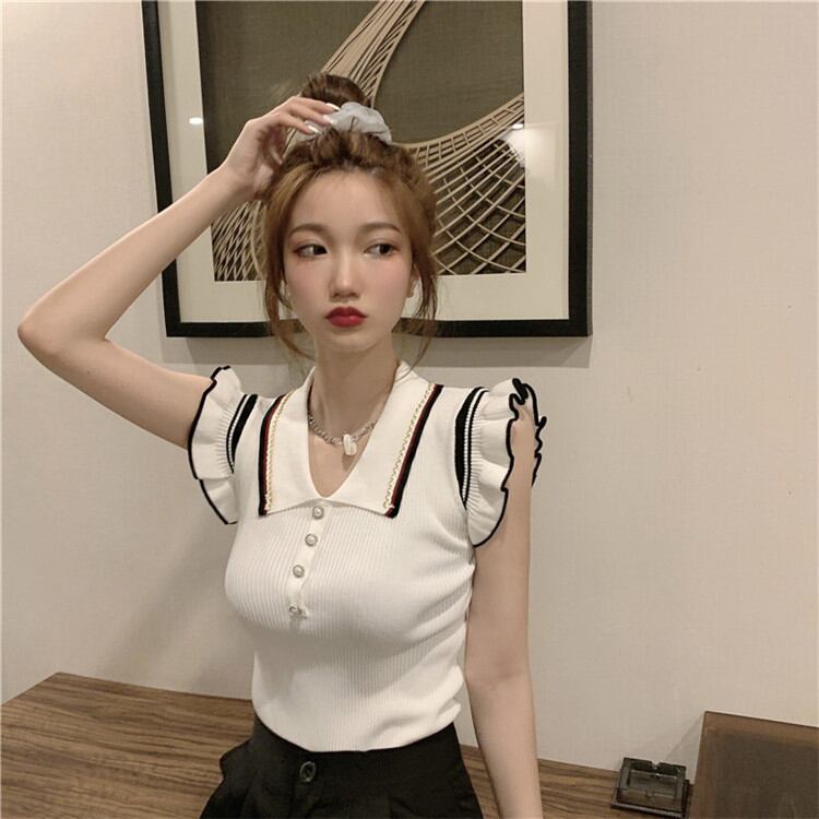 雰囲気のある佇まい スリム Vネック 薄手 デザインセンス ノースリーブ ポロシャツ カジュアル ニット