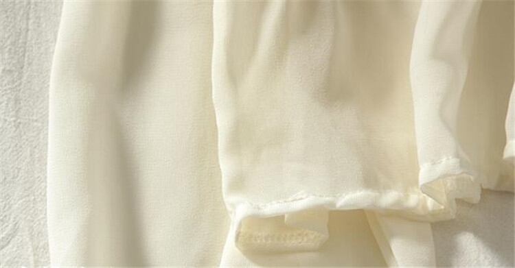パフスリーブ シフォン シャツ 女性 秋 韓国版 ゆったりする 透かし彫り Vネック トップス タイド