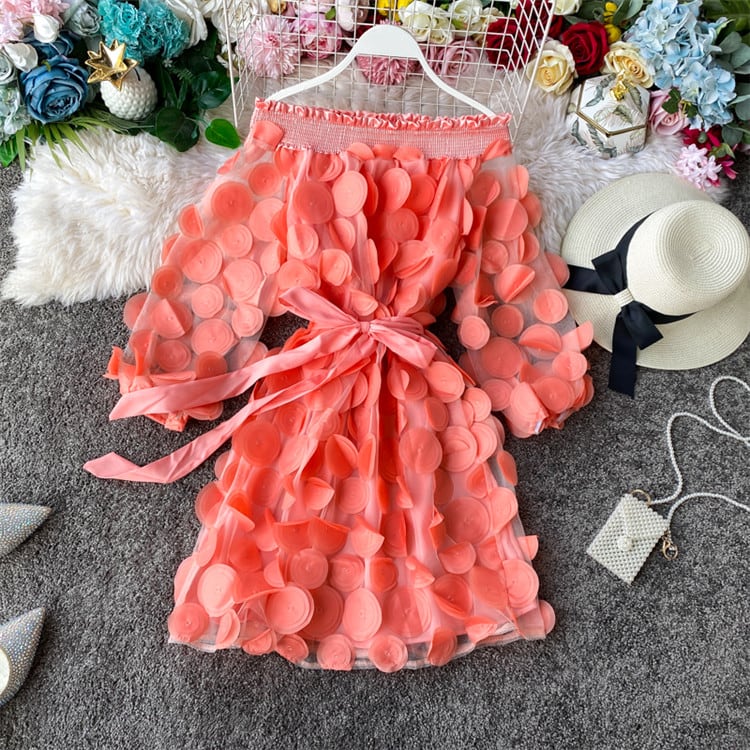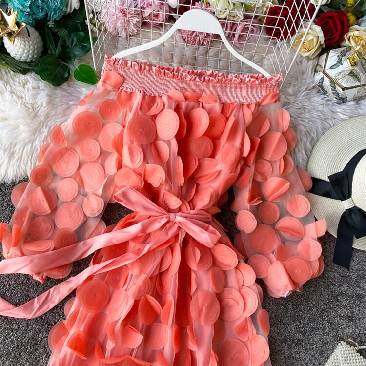 ワンピース パフスリーブ スリムフィット レース 中・長セクション