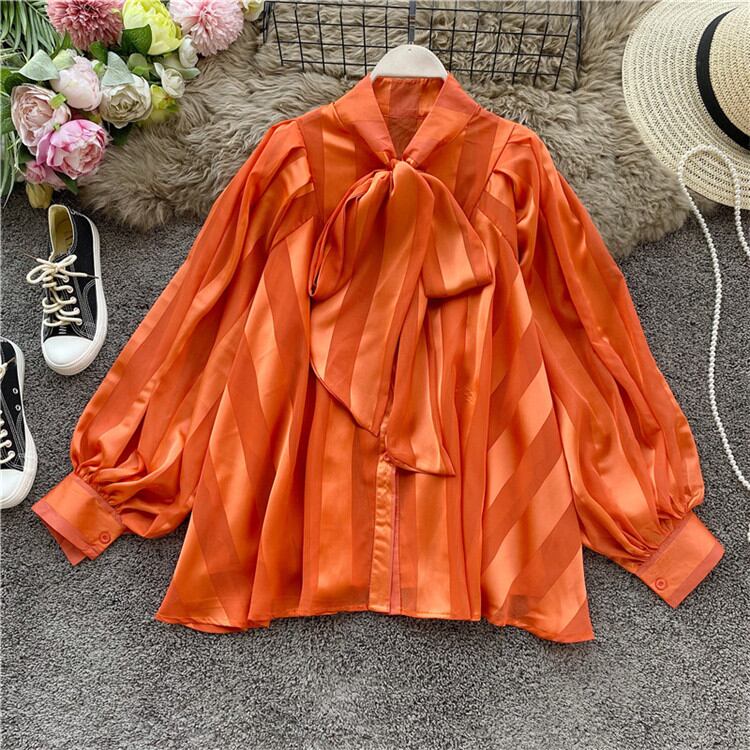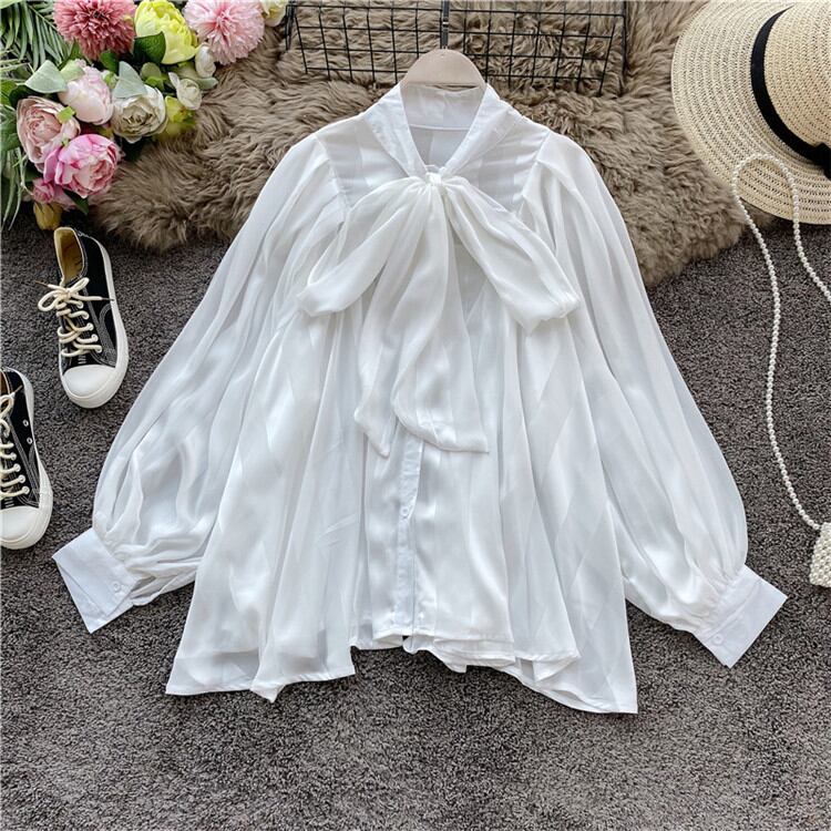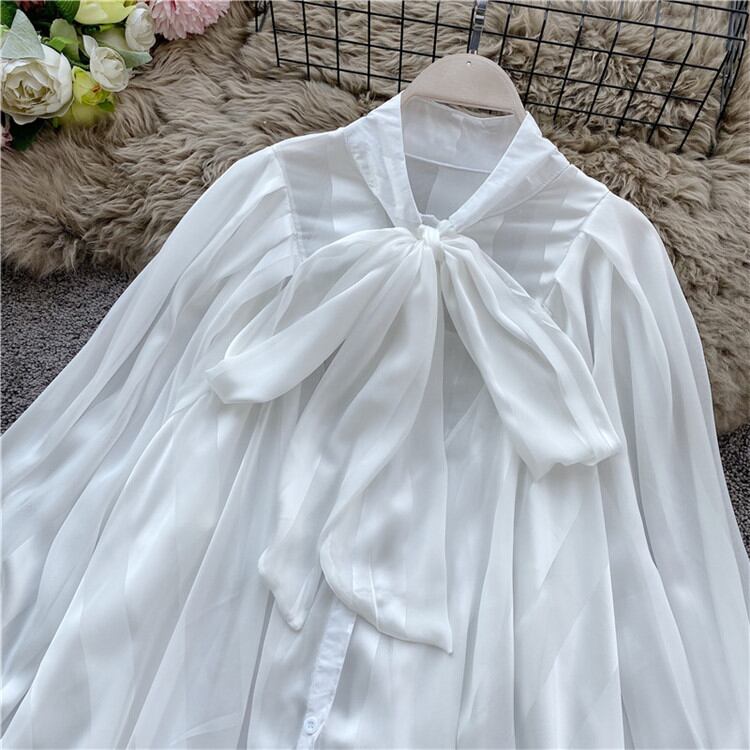 ランタンスリーブ 中・長セクション 長袖 トップス 百掛け デザインセンス 蝶結び