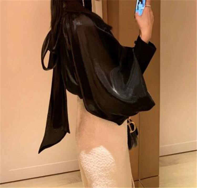 タートルネック パースペクティブ 光沢 トップス シャツ ライトラグジュアリー