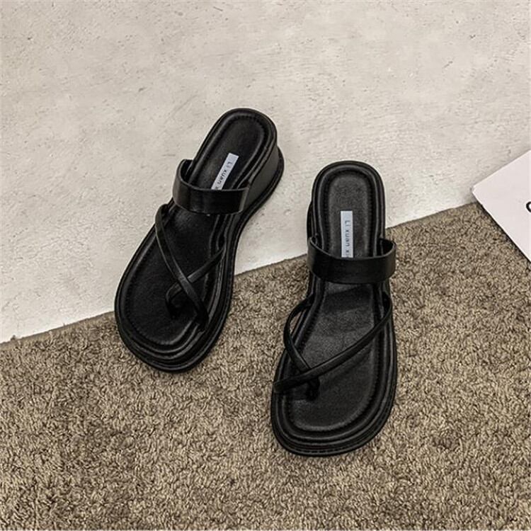 今季トレンドデザイン ウェッジヒール スリッパ 厚底 増加 ピンチ ハイヒール トング