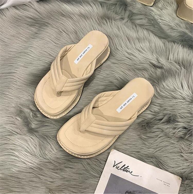 韓国大人気 デザイン トング 婦人靴 キャンディーカラー 厚底 スリッパ フラット アウトサイドウェア