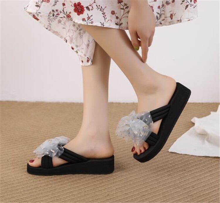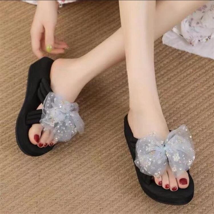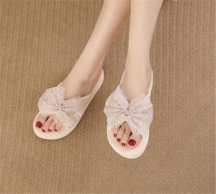 大好評レビュー続々 蝶結び スリッパ スロープヒール 厚底 ファッション 百掛け 滑り止め ビーチシューズ