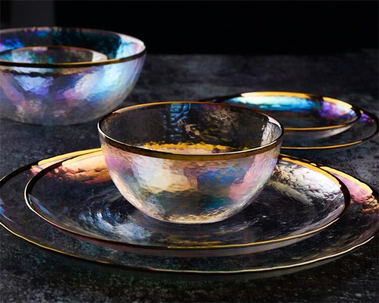 トレンド感をマーク 早い者勝ち ウエスタンプレート レインボー ハンマーパターン グラス ディッシュボウル