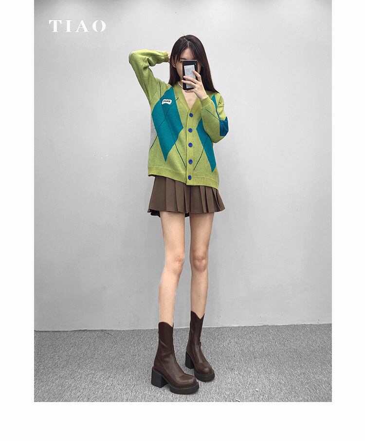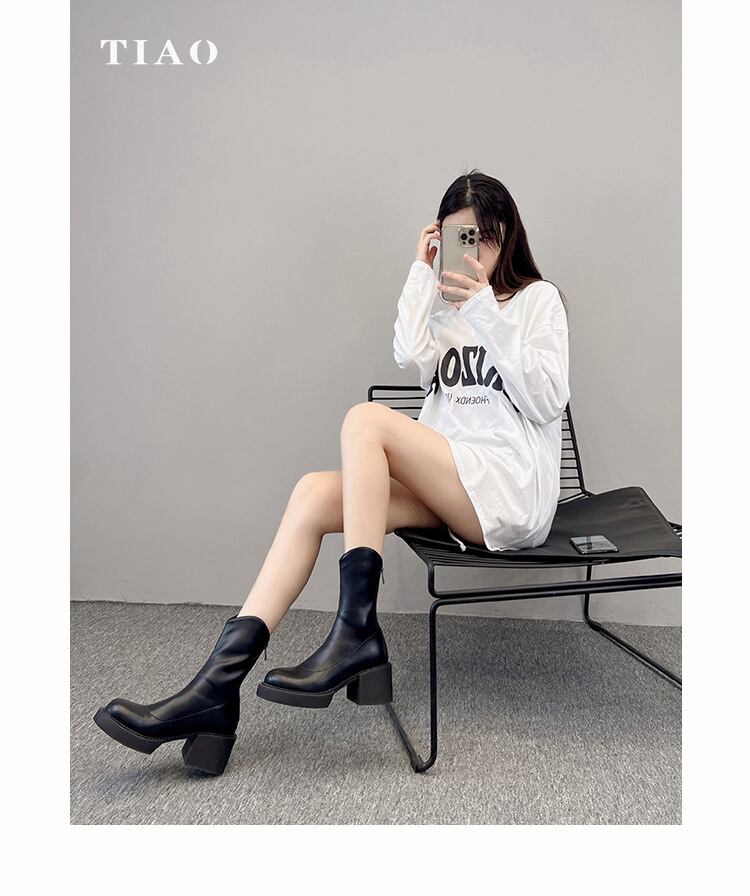 超人気ins話題 ショートブーツ ローチューブ スクエアトゥ エラスティック 厚手のヒール レトロ
