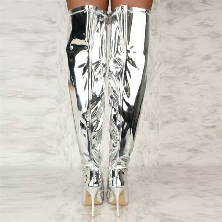 今日から春まで 光沢 膝上ブーツ ロングブーツ キャットウォーク ナイトクラブ スーパーハイヒール