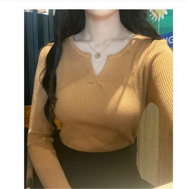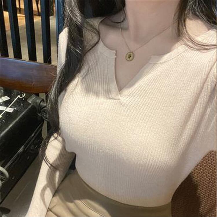 着回し度抜群!楽ちんの極み Vネック ボトムシャツ インナー セーター 無地 スリム ニットトップス
