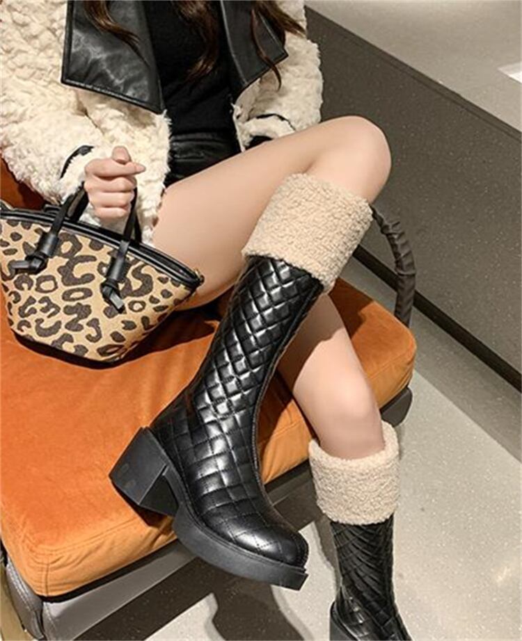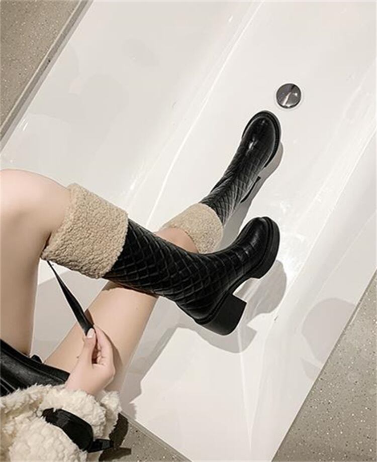 良かったです 太いヒール 裏起毛 暖かい 厚手 ギャザリング ロングブーツ カジュアル