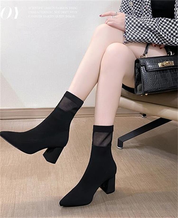 芸能人も好きな商品 ソックスブーツ ポインテッドトゥ 厚手のヒール 薄手のブーツ ショートブーツ