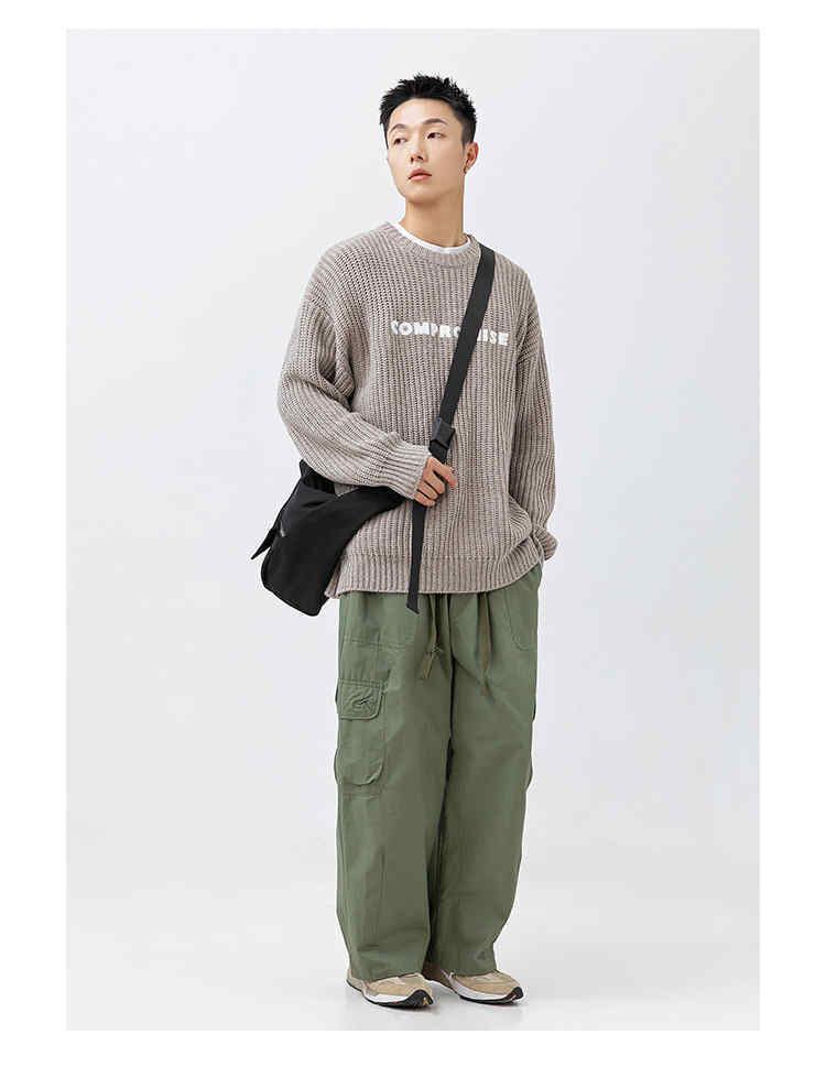P12983 ニット セーター シンプル 英字柄 秋冬 カジュアル 新作 バーカ メンズ 秋冬 快適