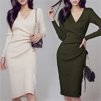 u20125 3色 ワンピース 着痩せ   秋冬新作 レディース  無地 OL エレガンス