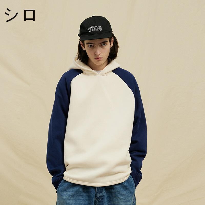 P12846 パーカ 長袖 帽子付き 切替 保温 バーカ 無地 カジュアル 秋冬 ルーズ メンズ