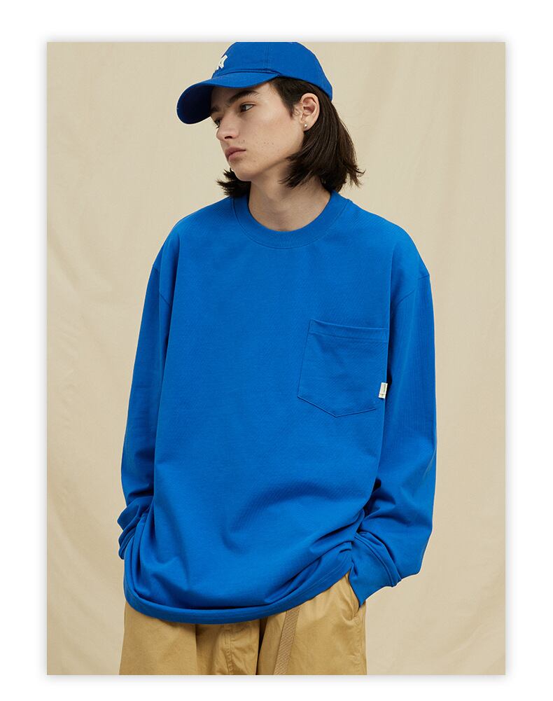 P12792 Tシャツ 長袖トップス  無地  ポケット付き 大きいサイズ シンプル メンズ