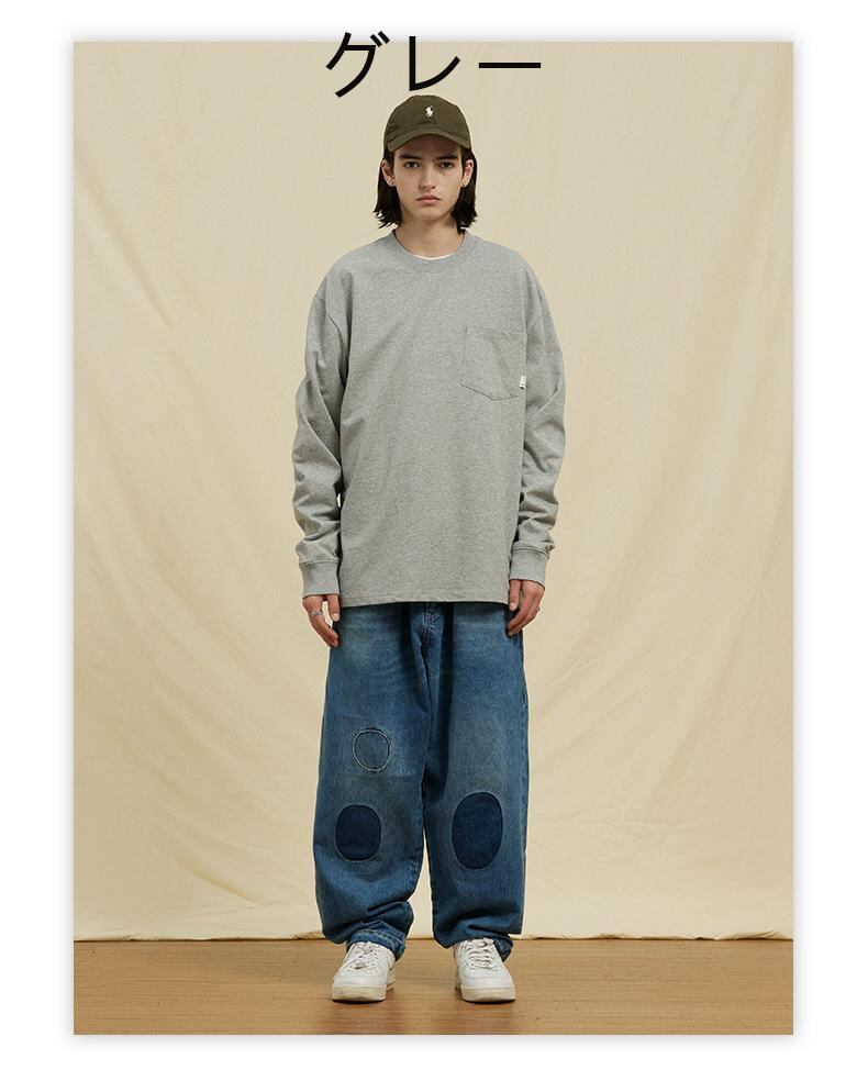 P12792 Tシャツ 長袖トップス 無地 ポケット付き 大きいサイズ シンプル メンズ