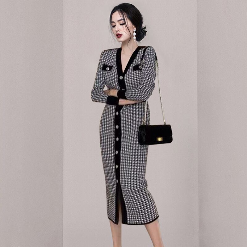 u20042 ワンピース ロング丈 秋新作 レディース 無地 カジュアル エレガンス Vネック