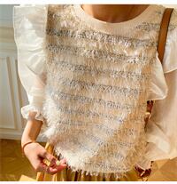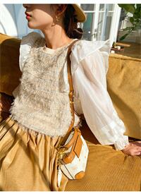 u20081カーディガン  エレガンス レディース カジュアル OL 快適  長袖 ラウンドネック パフスリーブ