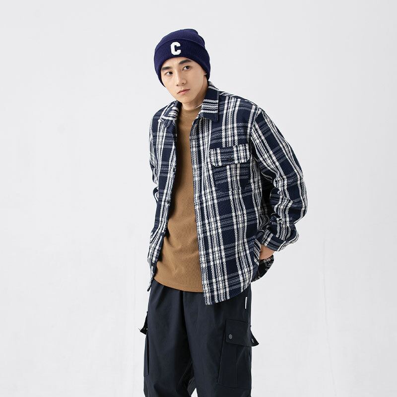 P12772 カジュアル チェック 学院風 春秋 英字柄 2色 快適 メンズ おしゃれ ポケット付き
