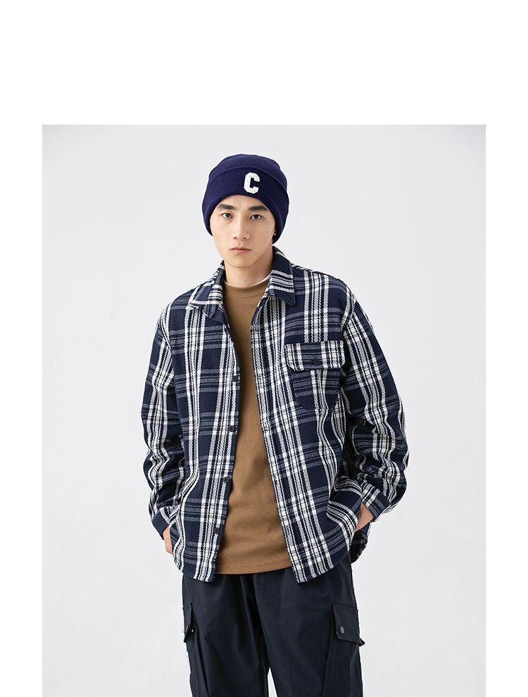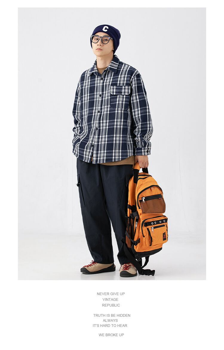 P12772 カジュアル チェック 学院風 春秋 英字柄 2色  快適 メンズ おしゃれ ポケット付き