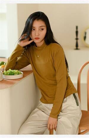 u19974 4色 トップス 秋新作   着痩せ 長袖 無地 レディース ハイネック