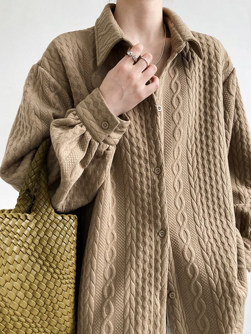 u19809  トップス レディース ニット スプライト シャツ   ショールカラー 無地 長袖