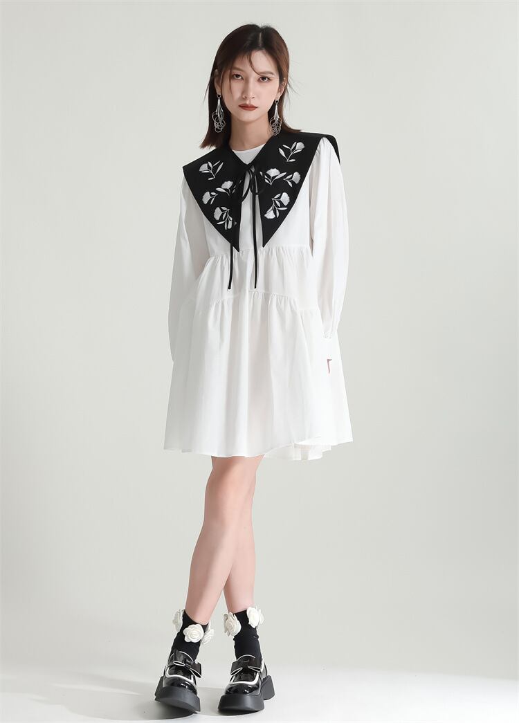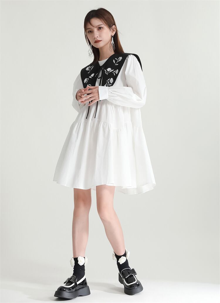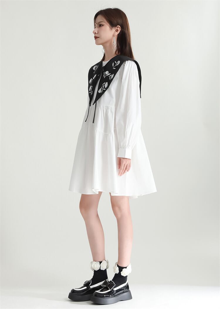 u19919 2色 シャツワンピース 夏秋新作  エレガンス 着痩せ 通勤 OL ラウンドネック長袖 レディース