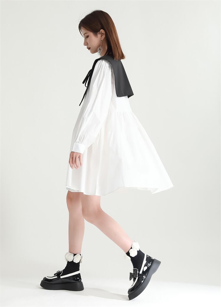 u19919 2色 シャツワンピース 夏秋新作 エレガンス 着痩せ 通勤 OL ラウンドネック長袖 レディース