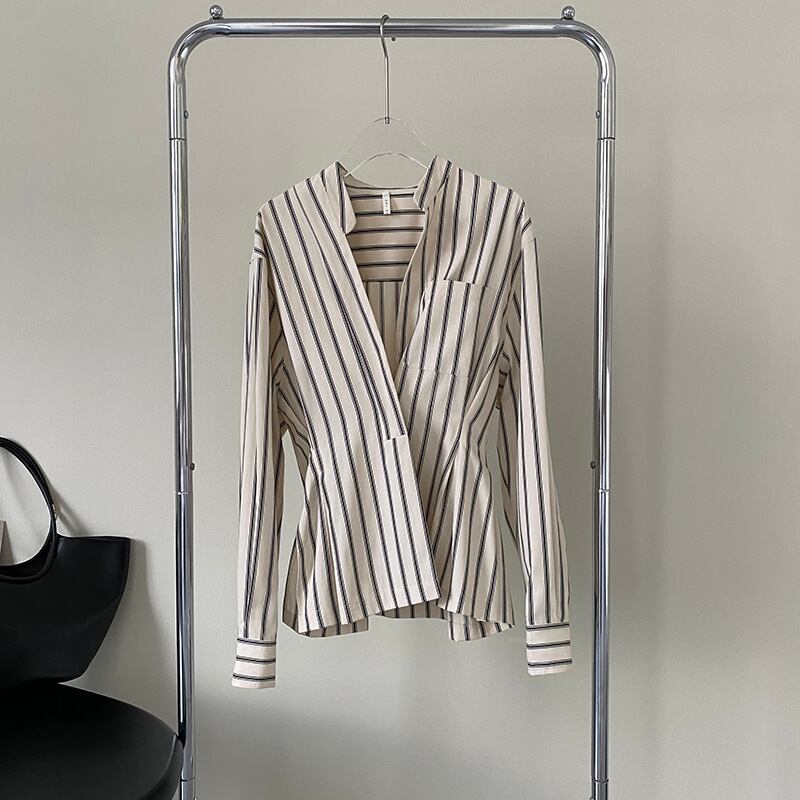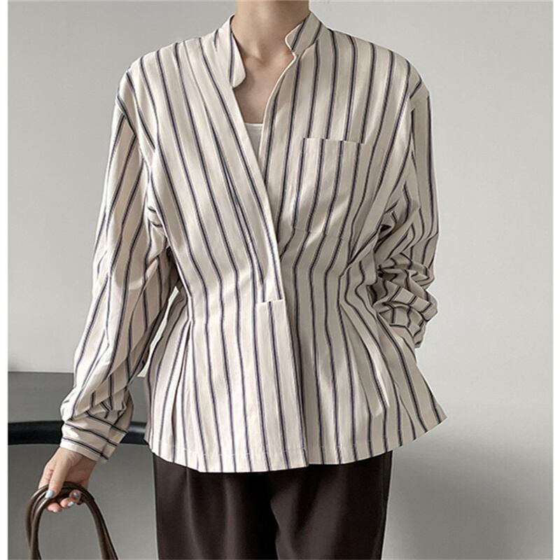 u19798 レディース カジュアル 夏秋新作 Vカラー 長袖 シャツ 上着 エレガンス ボーダー