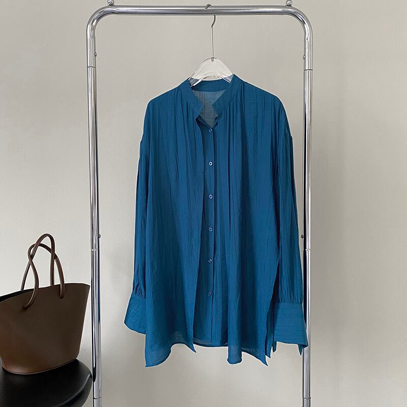 u19795 レディース カジュアル 夏秋新作 ショールカラー 長袖 シャツ 上着 無地