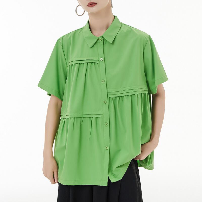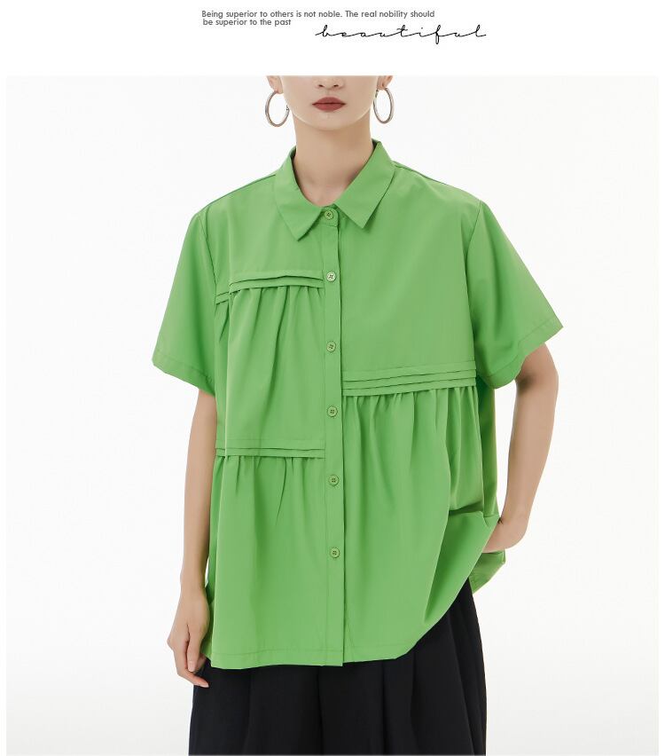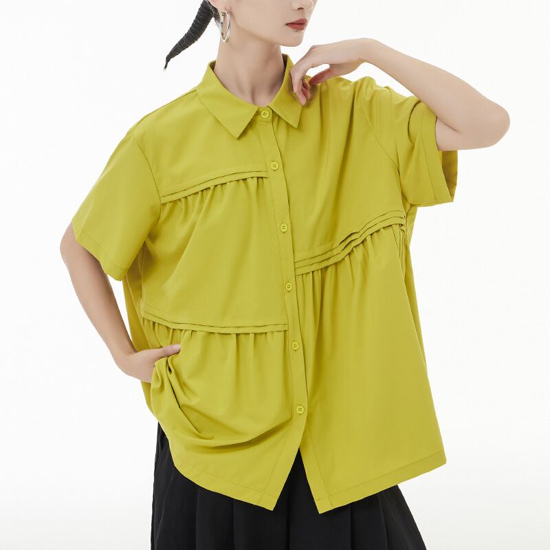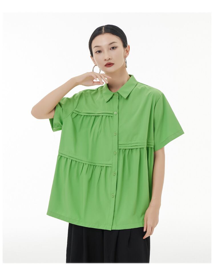 u19784 3色 レディース 夏秋新作 ショールカラー エレガンス トップス 半袖