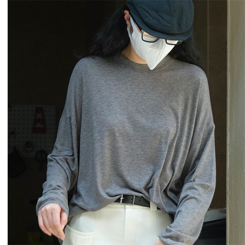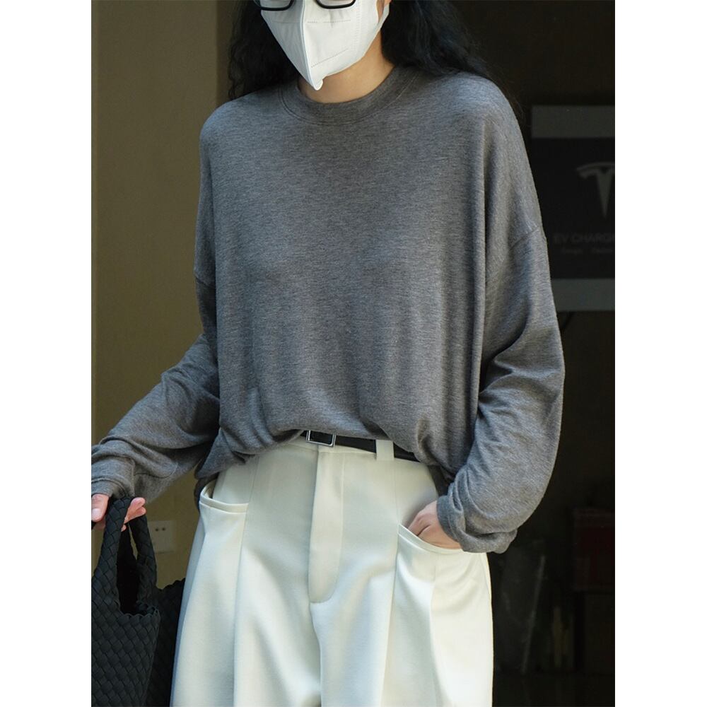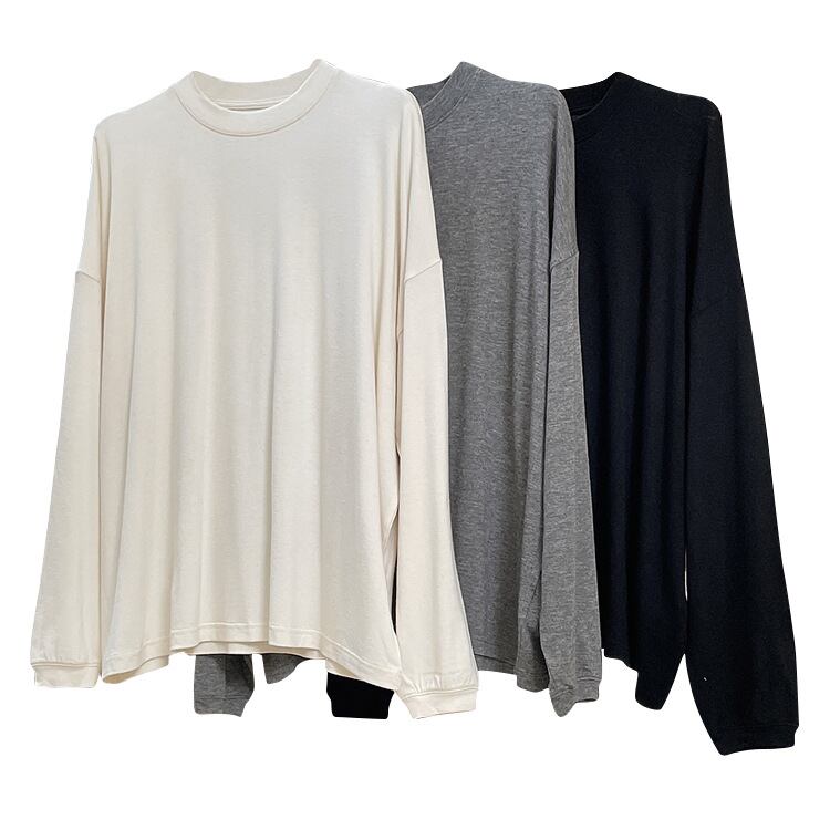 u19910 レディース シンプル 無地 夏秋新作 3色 シャツ 上着 長袖 ラウンドネック