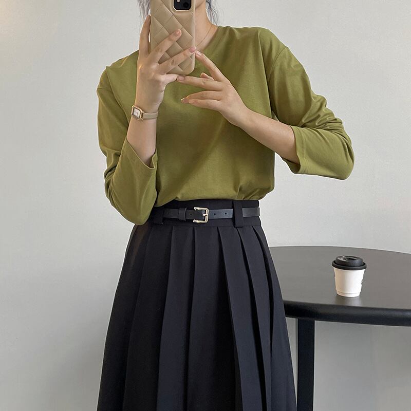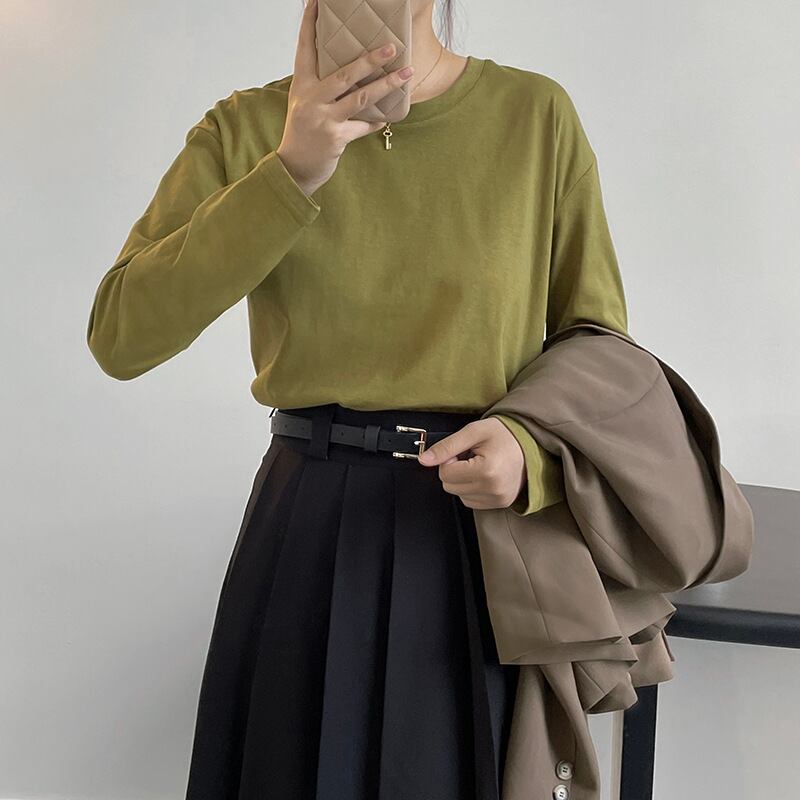 u19891 シャツ レディース 無地 入園 入学 卒園 夏秋新作 上着 トップス 長袖 ラウンドネック
