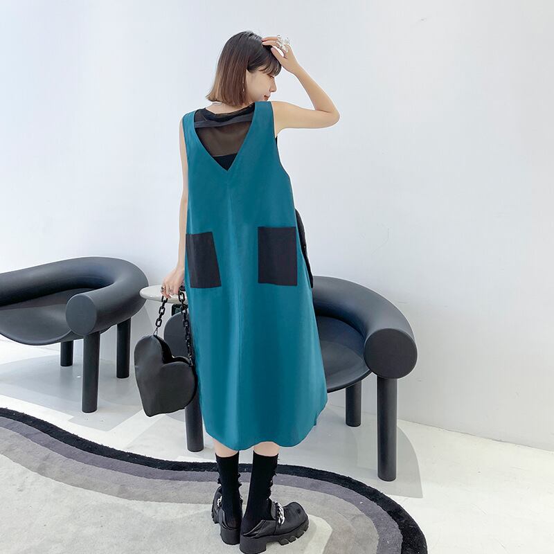 u19683 ワンピース 無地 ロング丈 夏秋新作 レディース トレンドカジュアル ノースリーブ