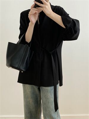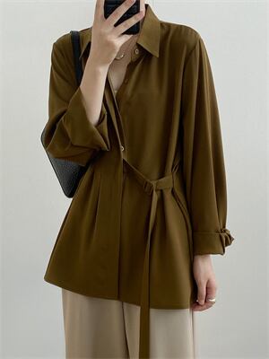 u19848  3色 トップス レディース エレガンス シャツ  ショールカラー 無地 長袖