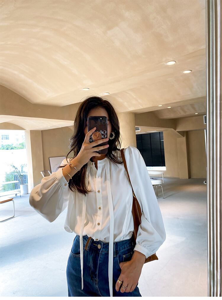u19834 カーディガン シャツ  快適  パフスリーブ 長袖 エレガンス レディース 無地 OL ラウンドネック