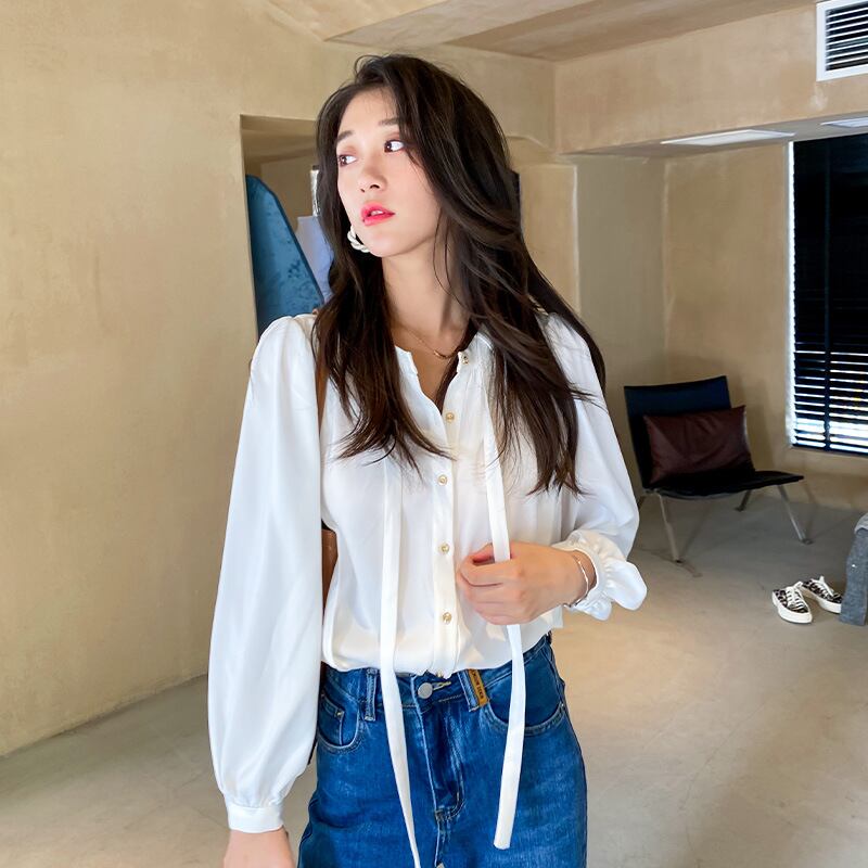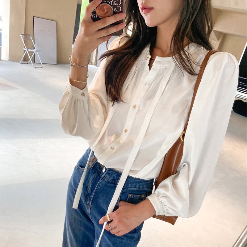u19834 カーディガン シャツ 快適 パフスリーブ 長袖 エレガンス レディース 無地 OL ラウンドネック