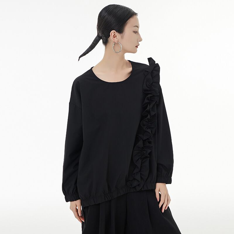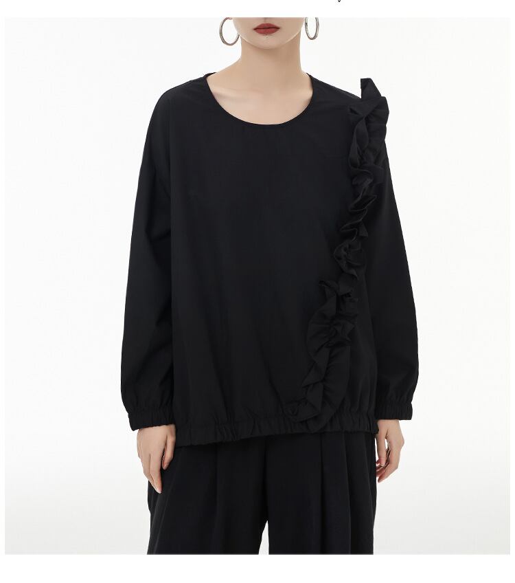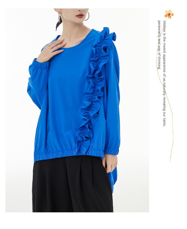 u19828 レディース カジュアル 夏秋新作 シャツ 上着 トップス 長袖 通勤 無地 フリル