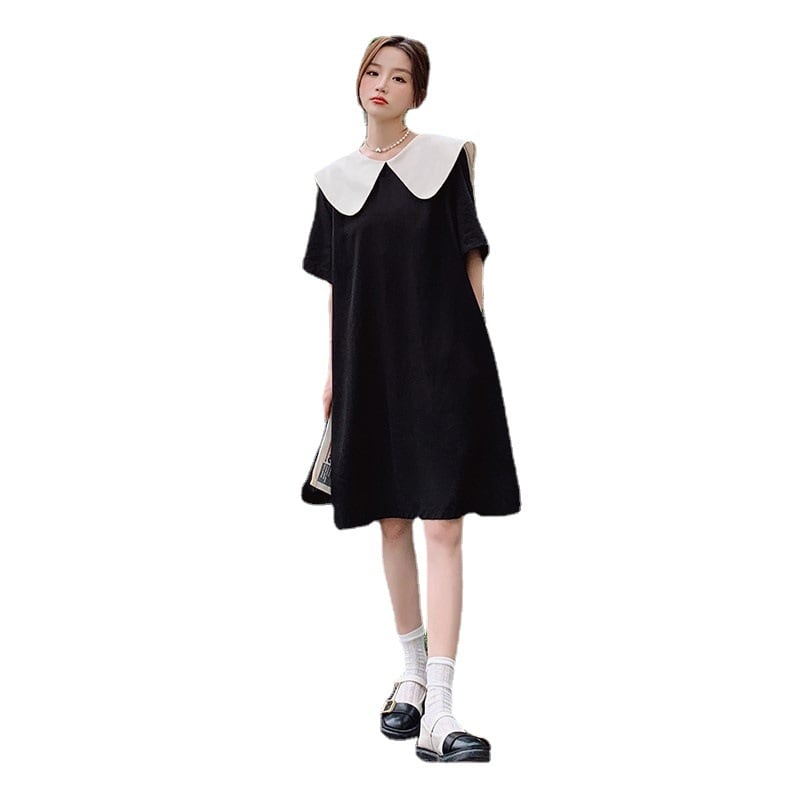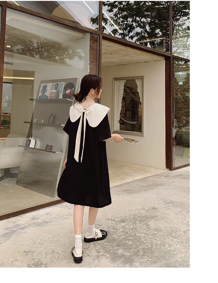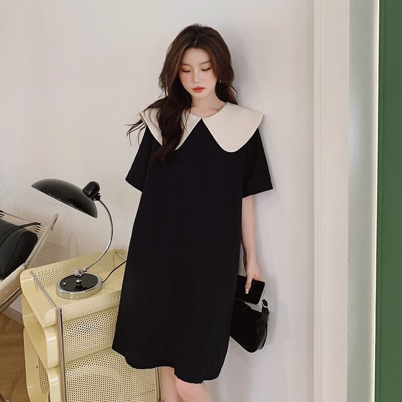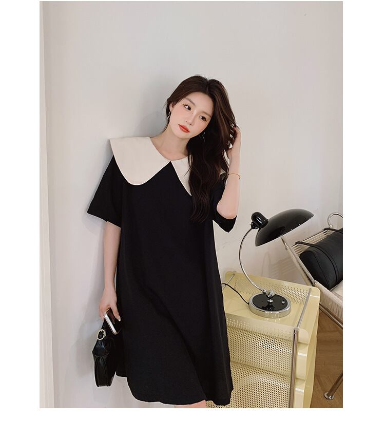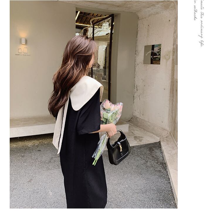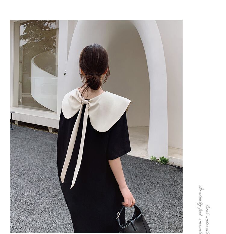 u19610 ワンピース 夏新作   着痩せ 半袖 無地 レディース ラウンドカラー